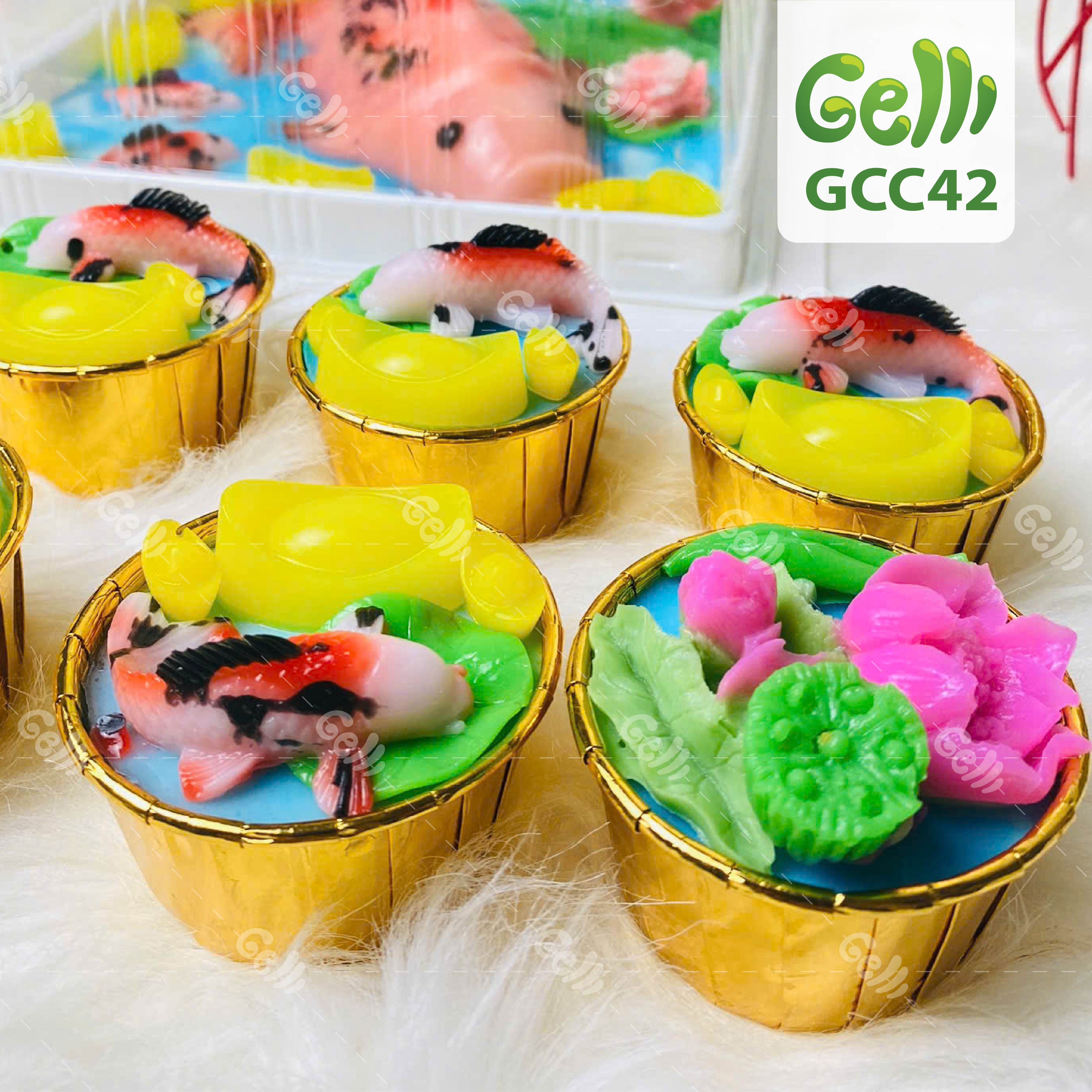 Bánh rau câu cupcake cá chép cúng Ông Táo GCC42 của Gelli – tạo hình tinh xảo, mát lành, ý nghĩa tài lộc. Phù hợp mâm cúng 23 tháng Chạp, giao hàng tiện lợi. Hotline: 0909599151