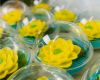 Mỗi bánh như một chiếc hồ thu nhỏ cùng với bông sen vàng rực nở rộ trên mặt hồ tượng trưng cho sự bình yên mà ai cũng mong có được trong năm mới.