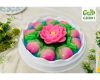 Chiếc bánh được trang trí nhiều quả đào xếp thành vòng tròn, ở giữa là hoa sen hồng. Chiếc bánh có đủ 5 màu sắc tượng trưng cho ngũ hành, đáp ứng tiêu chí của mâm cúng Phật hay cúng gia tiên.