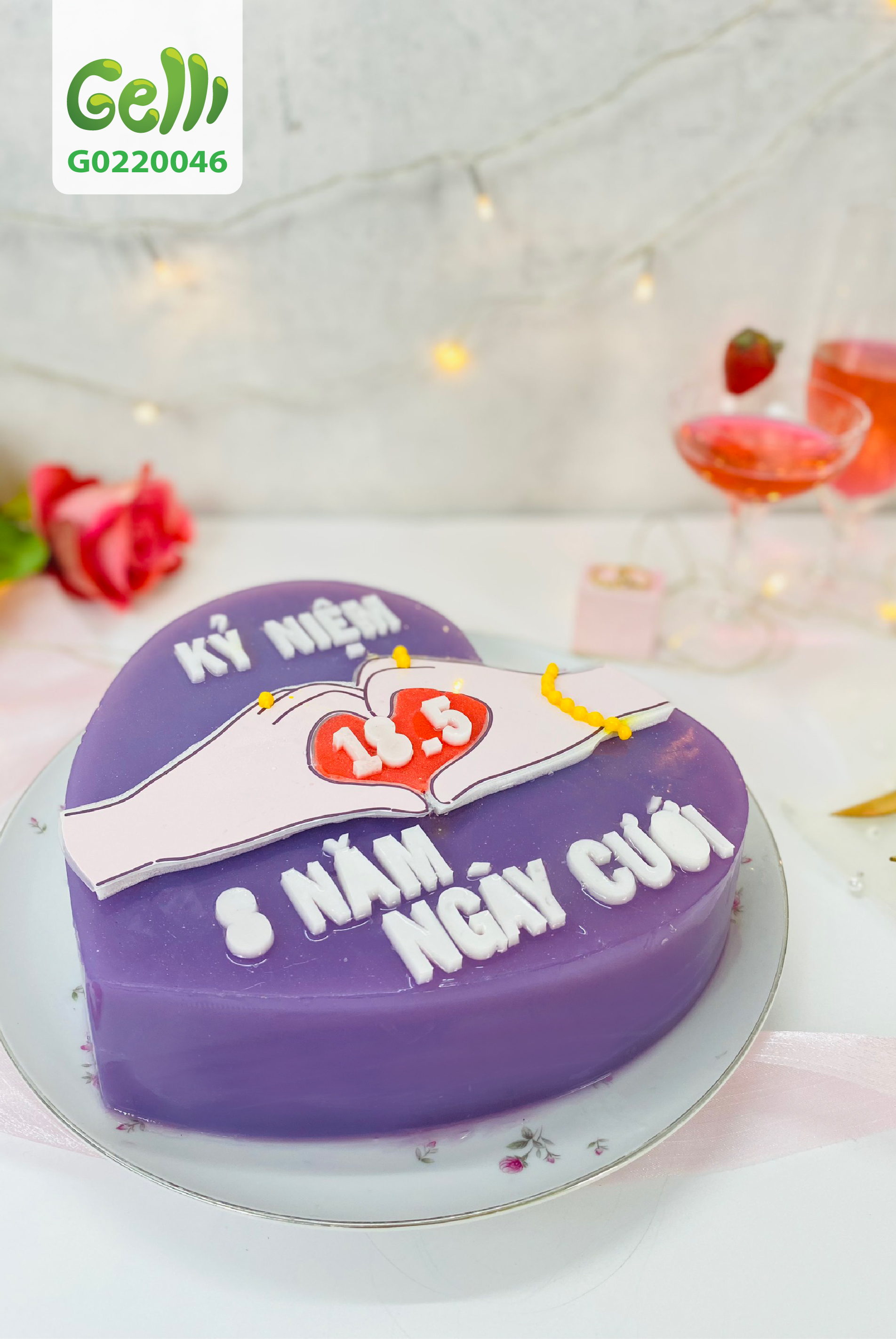 Bánh sinh nhật rau câu 2 bàn tay tạo hình trái tim - Gelli - G0220046