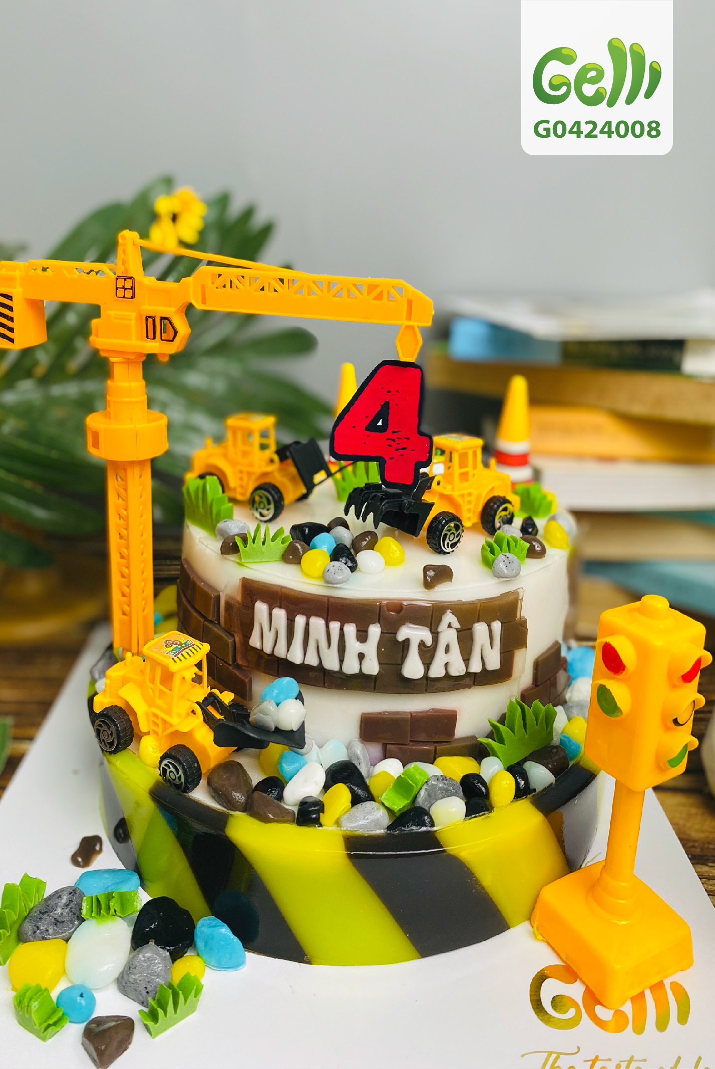 Bánh sinh nhật rau câu 2 tầng 4D - Gelli - Công trường và Xe Cẩu - Gelli - G0424008