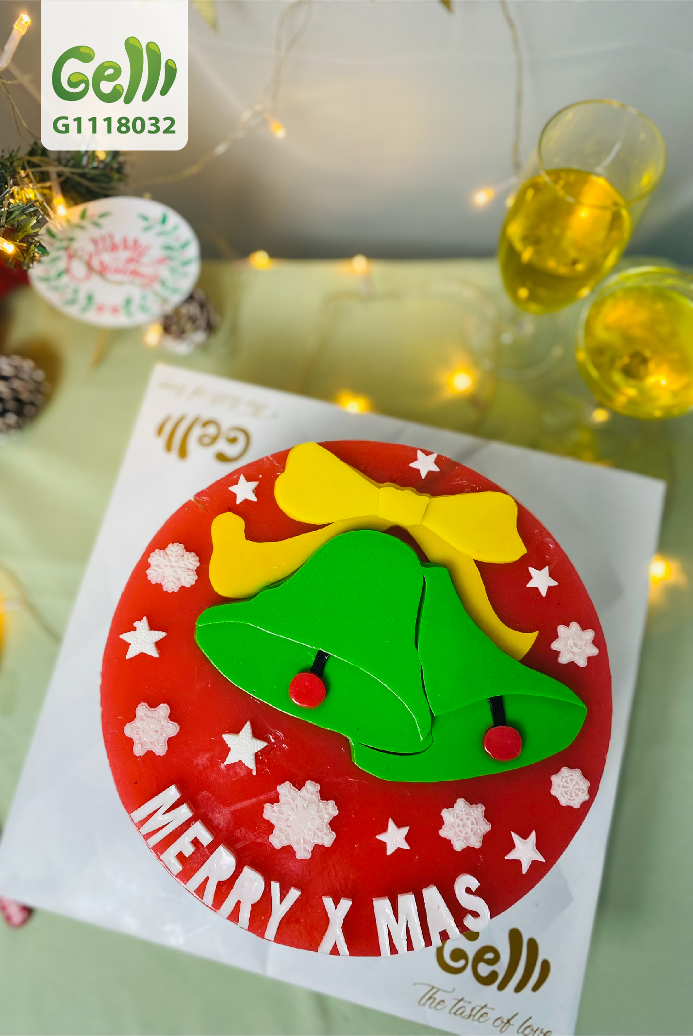 Noel ngoài dịp là thời khắc chuẩn bị chuyển giao giữa năm cũ và năm mới, gia đình sum vầy, còn là dịp để chúng ta có lý do để trang hoàn nhà cửa thêm phần đẹp mắt, sinh động. Trong dịp giáng sinh, người ta thường chọn mua cho ngôi nhà cây thông Noel, đây là vật hầu như không thể thiếu đối với các gia đình phương Tây, bên cạnh đó, các vòng nguyệt quế, những mô hình ông già Noel hoặc chiếc chuông treo ngoài cửa… là những vật xinh xắn cũng rất hay được lựa chọn. Lần này, Gelli dùng hình ảnh cặp chuông làm chủ đề chính của bánh sinh nhật rau câu cho giáng sinh năm nay.