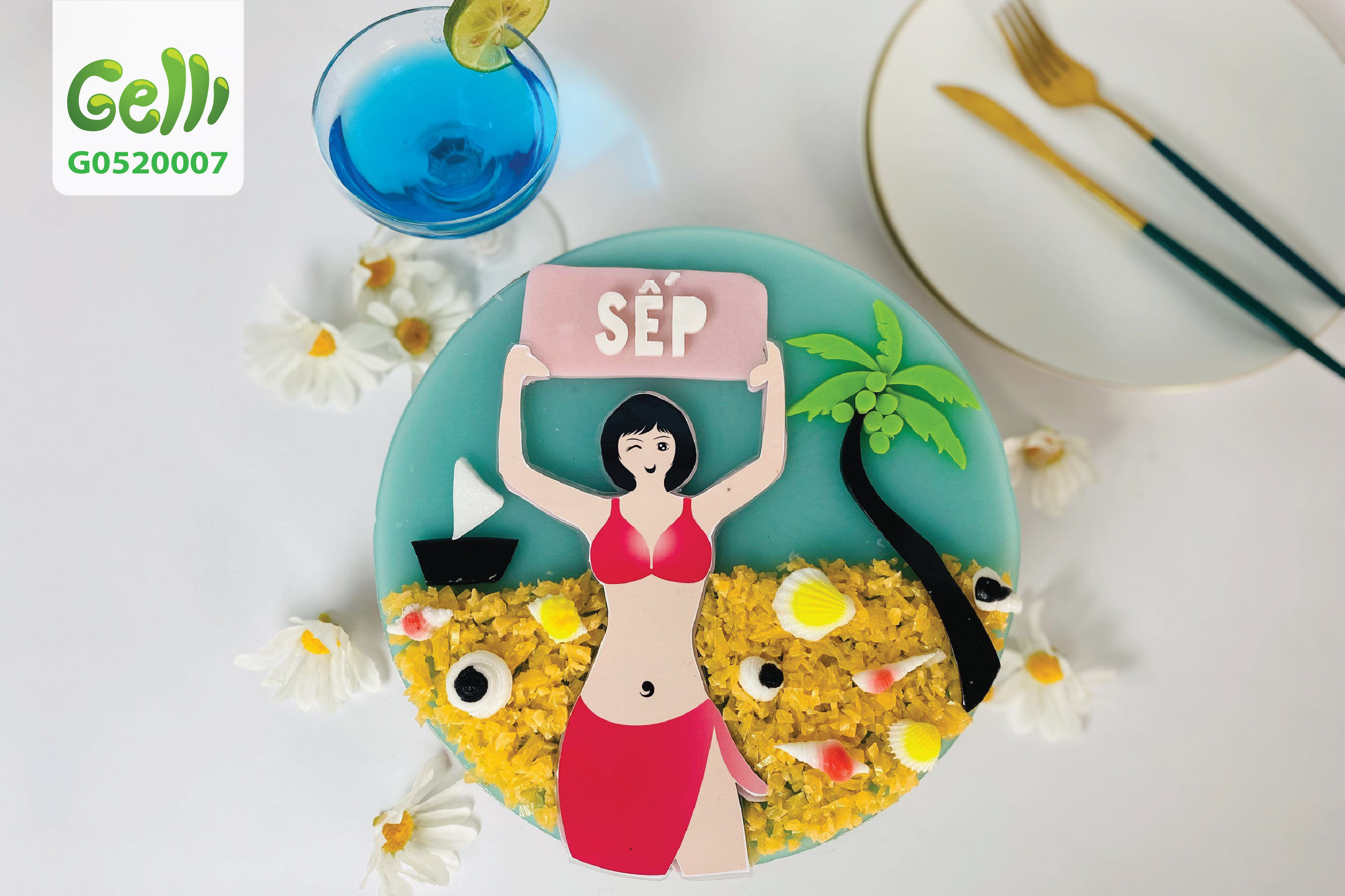 Chiếc bánh sinh nhật rau câu này chính là món quà tuyệt vời dành cho những cô gái yêu thích biển, cá tính mạnh như những làn sóng biển.