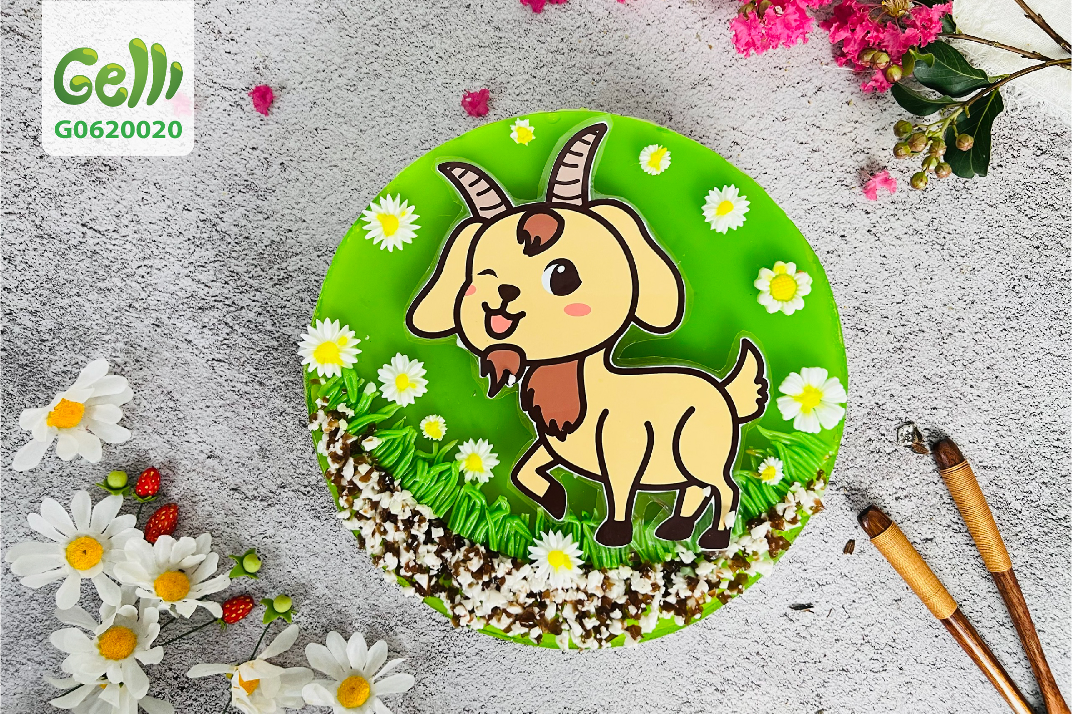 Bánh sinh nhật rau câu 2D con dê vàng - Gelli - G0620020