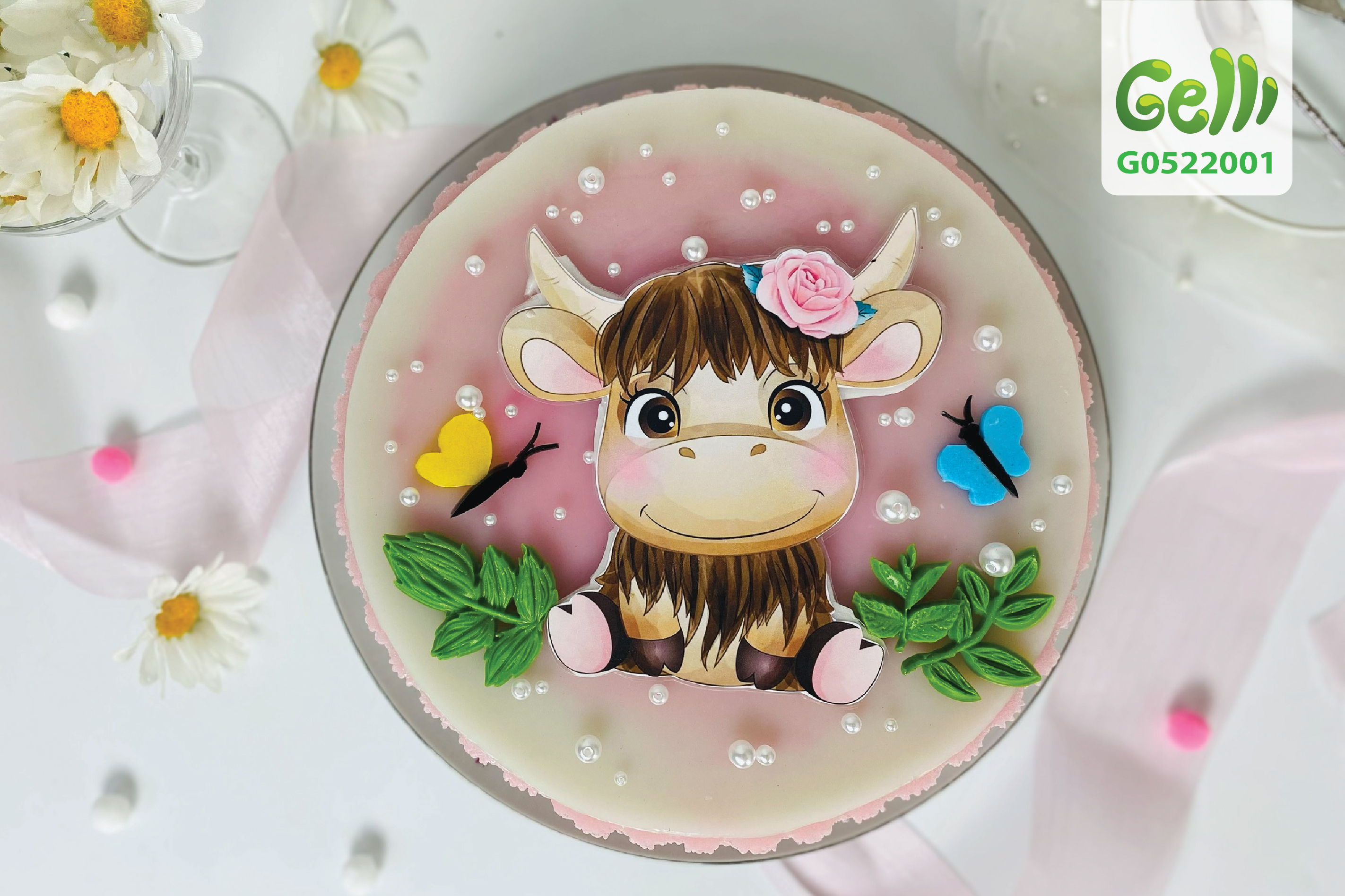 Bánh sinh nhật rau câu 2D con trâu cài hoa trên tóc - Gelli - G0522001