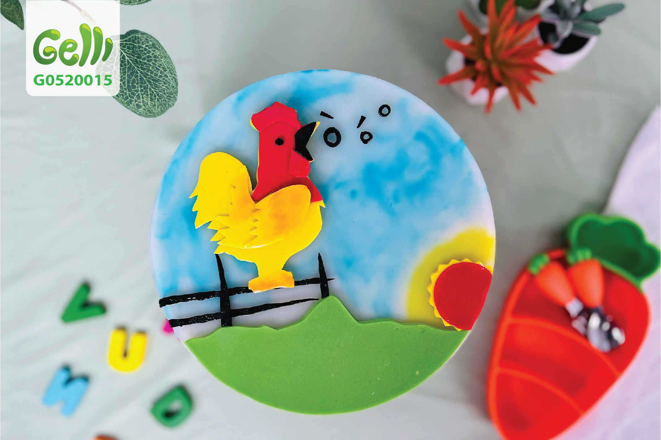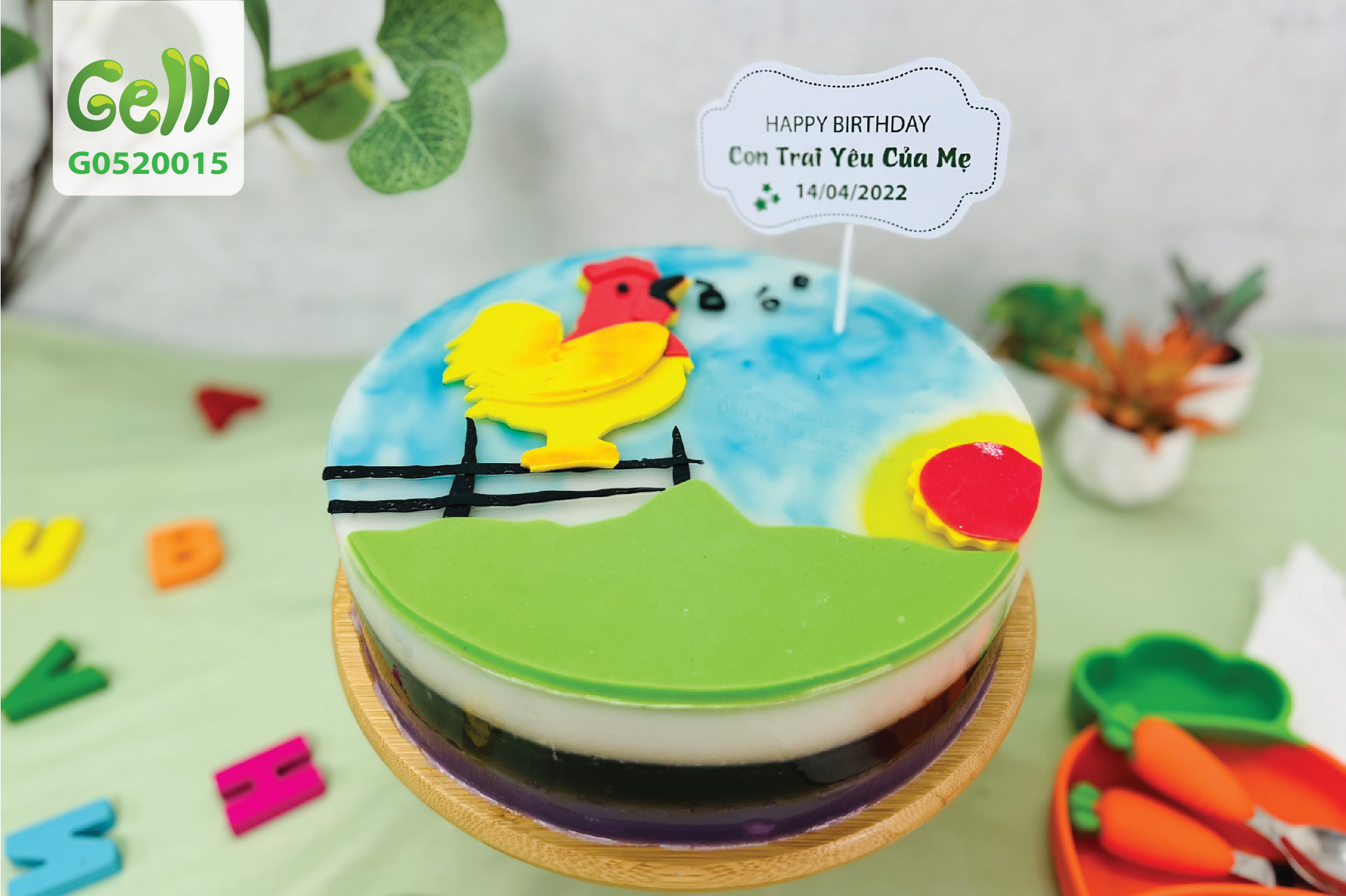 Bánh sinh nhật rau câu 2D gà trống ò ó o - Gelli - G0520015