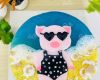Heo mẹ trong chiếc bikini chấm bi đen trắng trên chiếc bánh sinh nhật rau câu 2D Heo mẹ đi tắm biển từ Gelli.