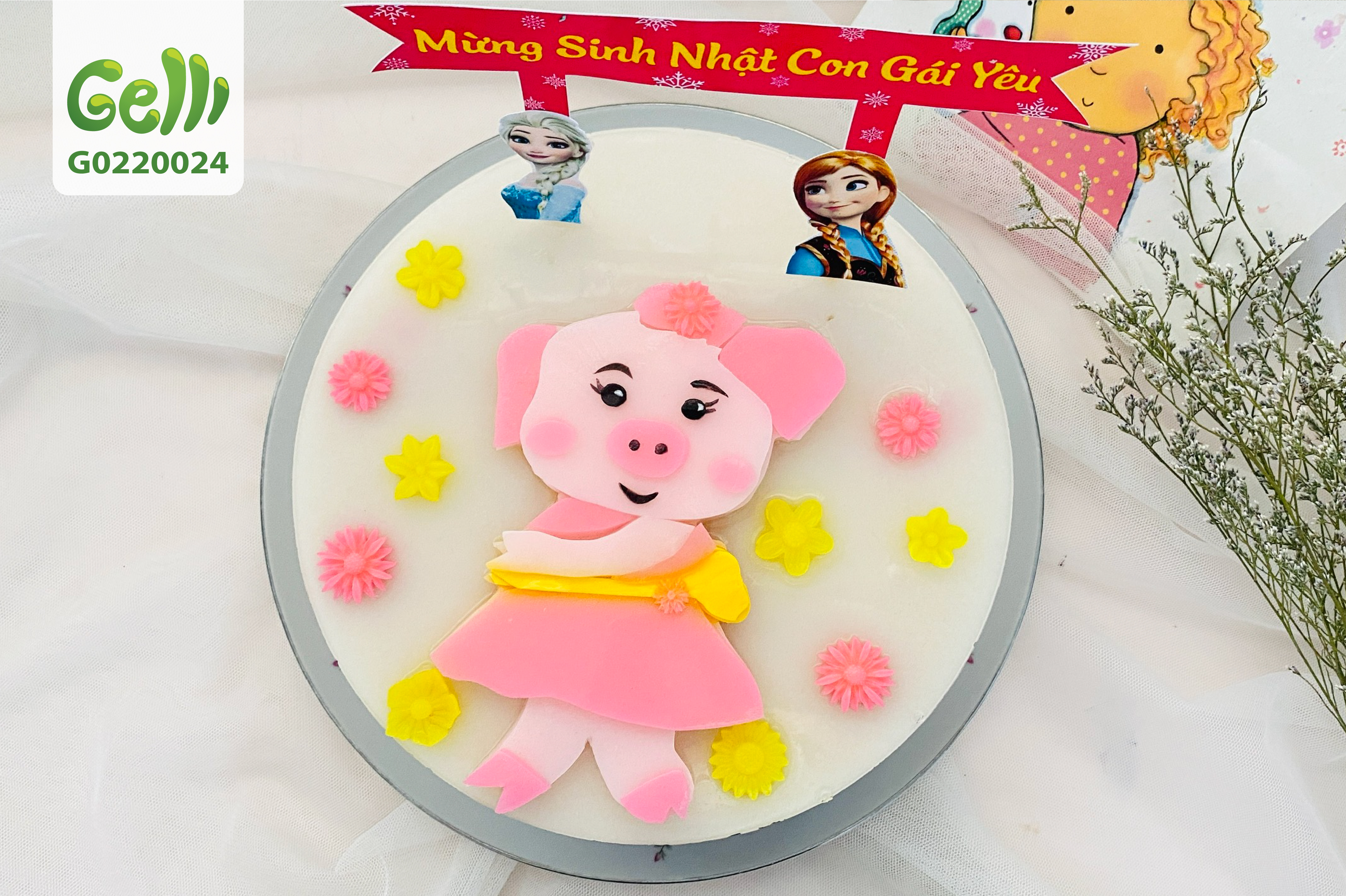 Bánh sinh nhật rau câu 2D mẫu con heo cho bé gái - Gelli - G0220024