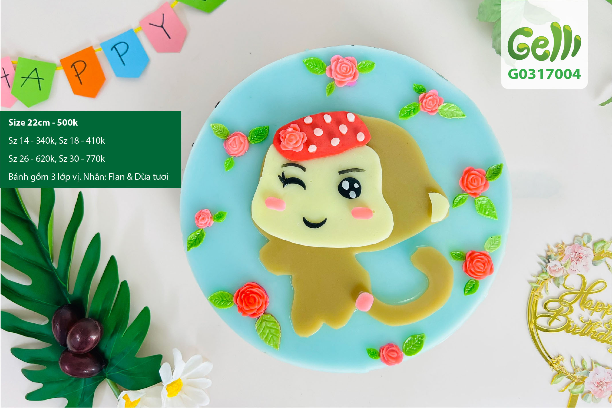 Bánh sinh nhật rau câu 2D mẫu con khỉ cho bé gái - Gelli - G0317004