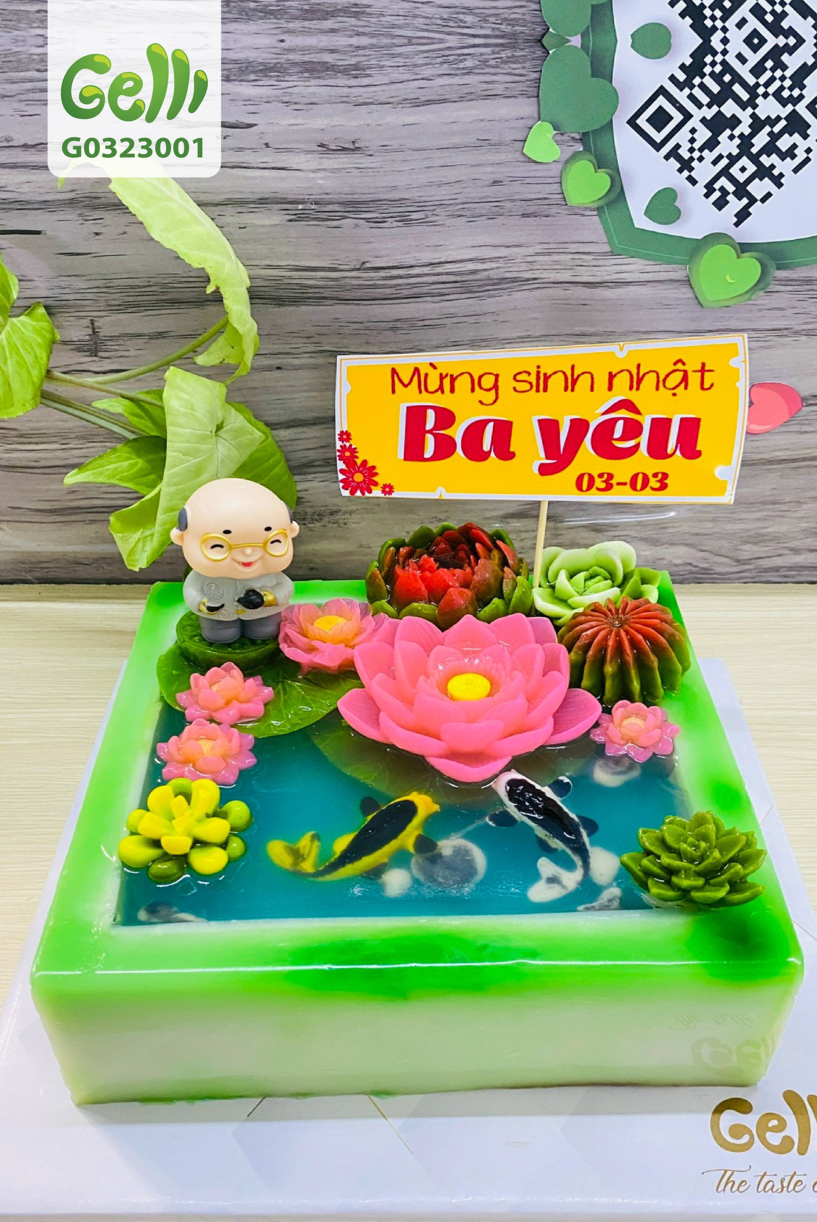 Bánh sinh nhật rau câu 3D hồ cá & hoa sen - Gelli - G0323001