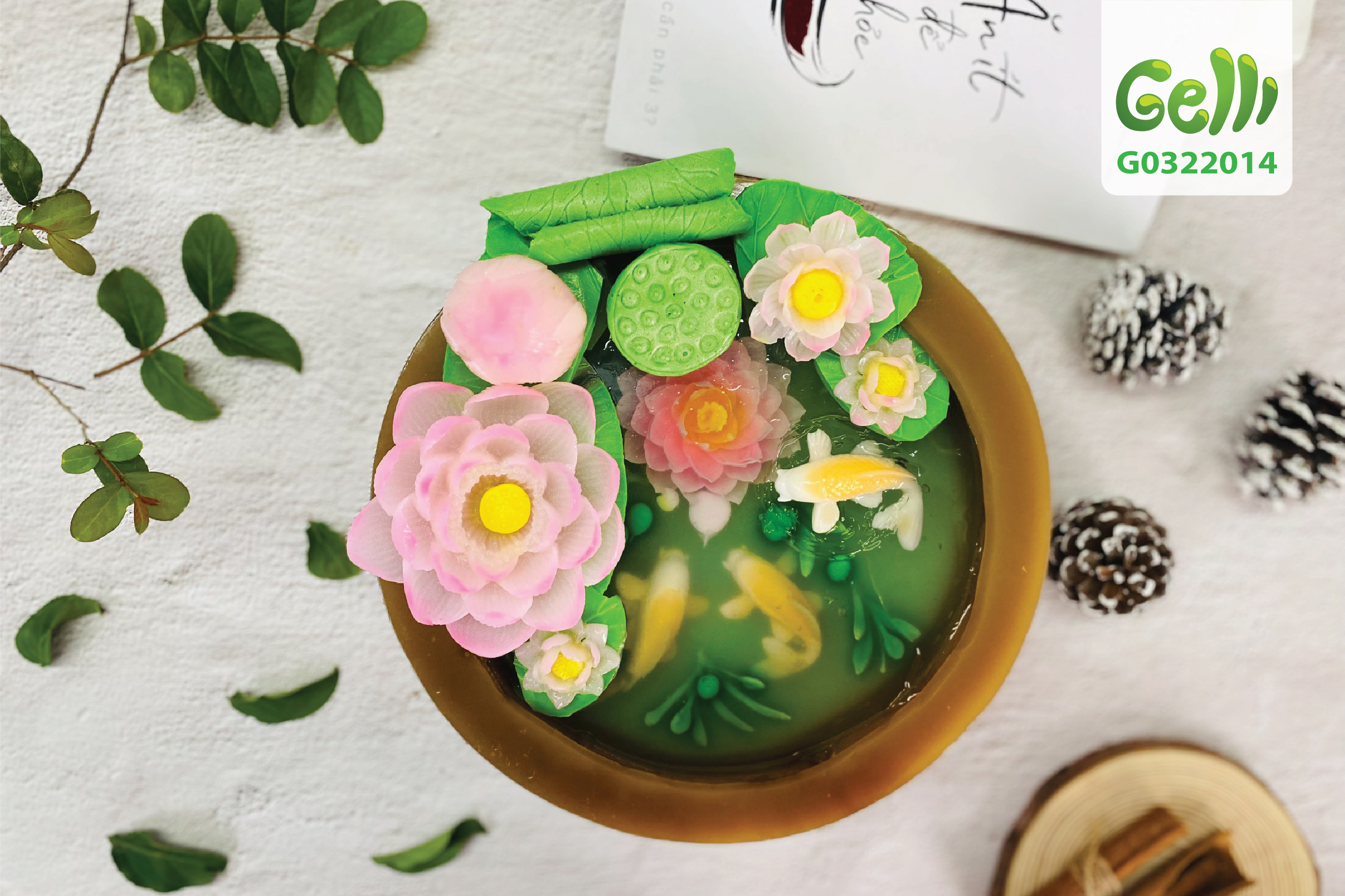Bánh sinh nhật rau câu 3D hồ cá & hoa sen hồng pastel- Gelli - G0322014