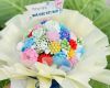 Bạn có thể tham khảo chiếc bánh sinh nhật rau câu bó hoa nhiều màu sắc này làm món quà đặc biệt cho những người phụ nữ yêu hoa.