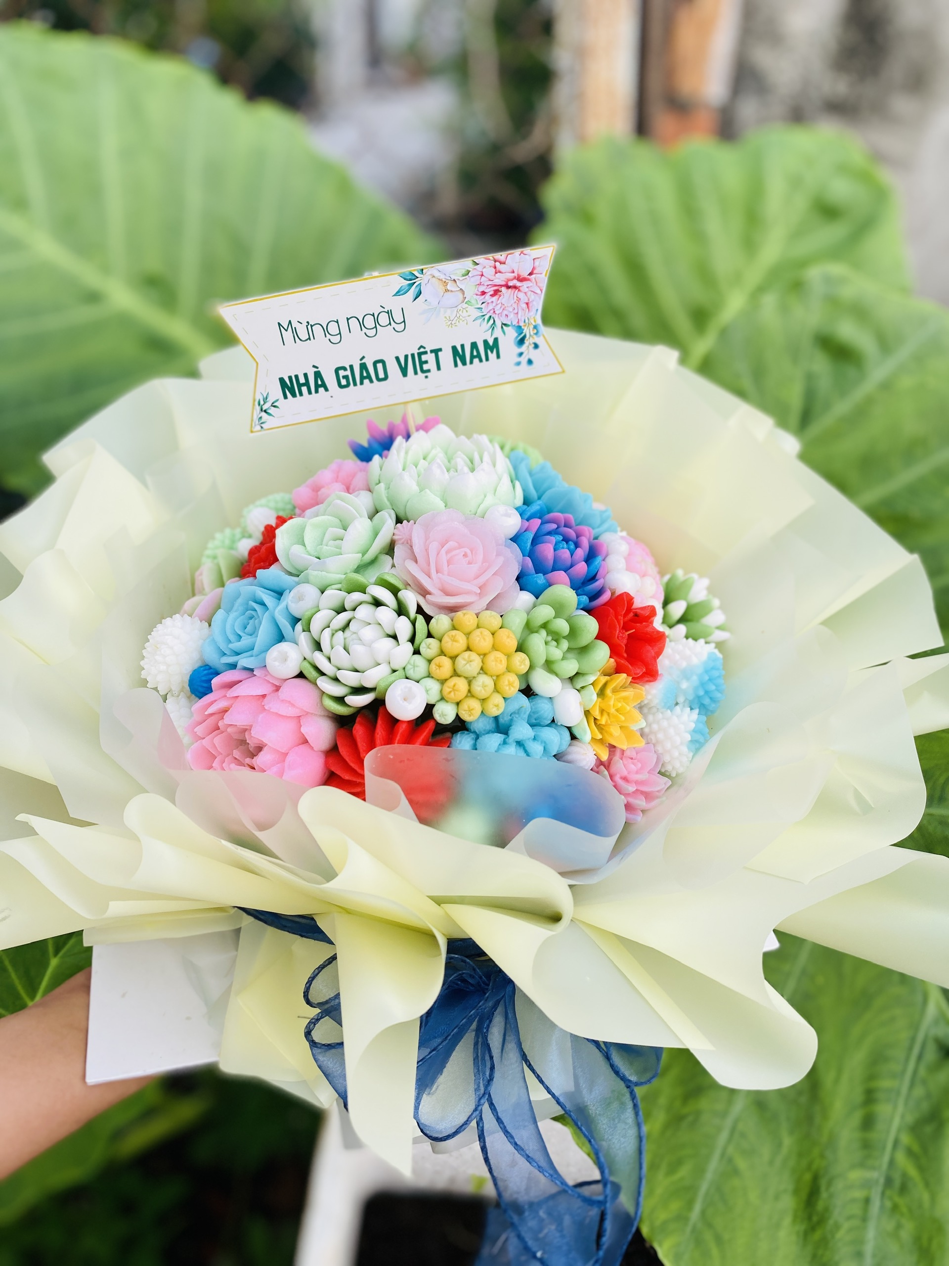 Đây là mẫu bánh Gelli được khách hàng yêu cầu làm tặng mẹ với mong muốn tặng mẹ một bó hoa bằng rau câu hoa nhiều màu sắc này.