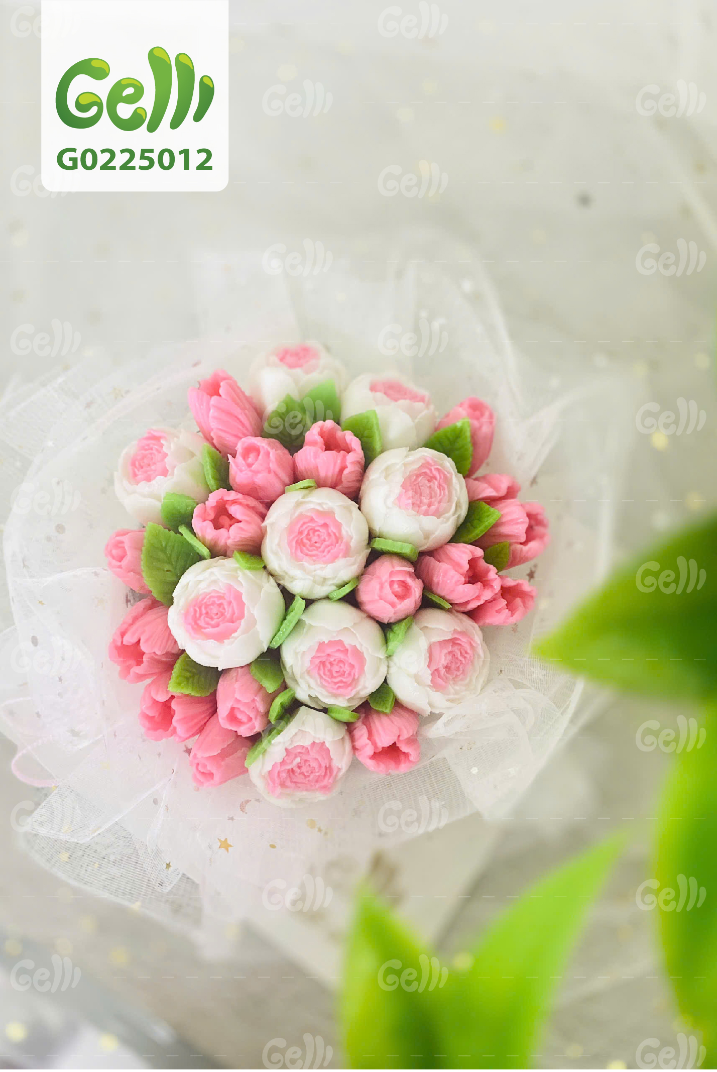Bánh sinh nhật rau câu 4D Bó Hoa Tulip & Hoa Hồng Ngàn Cánh - Gelli - G0225012