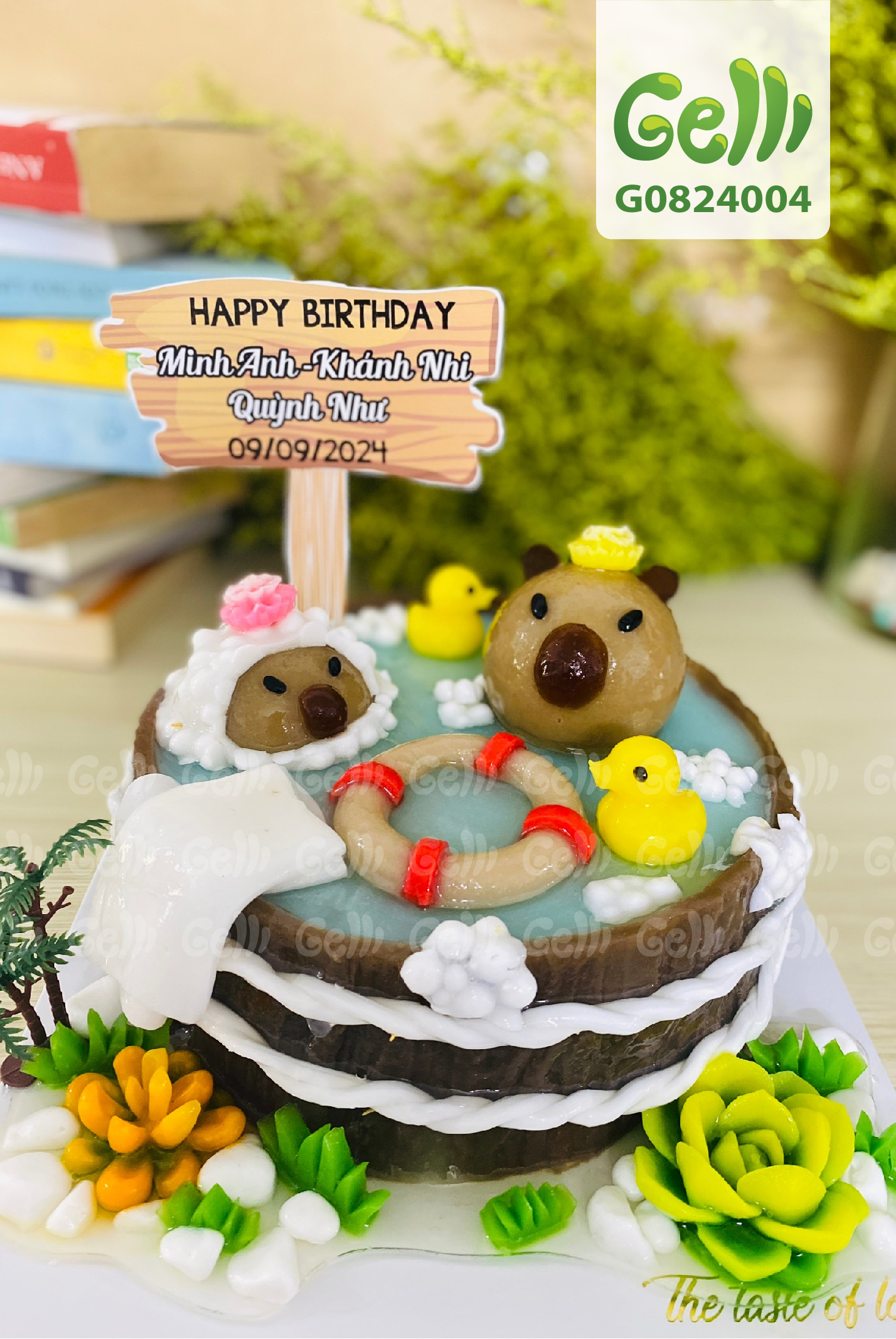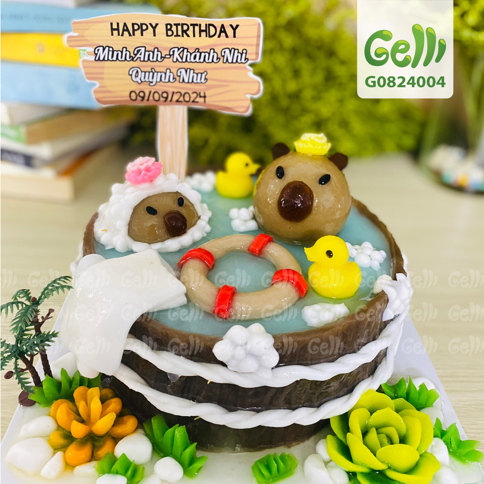 BÁNH SINH NHẬT RAU CÂU 4D CAPYBARA TẮM HỒ - GELLI - G0824004
