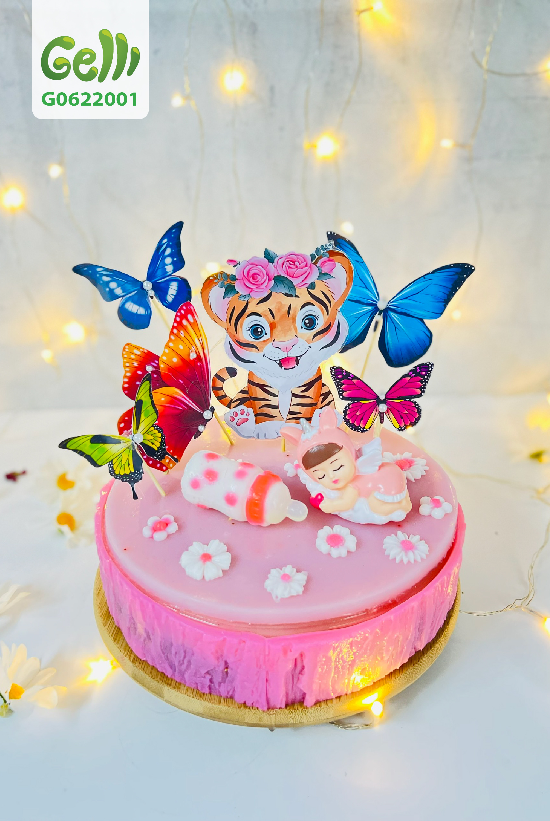 Bánh sinh nhật rau câu 4D con hổ và em bé thiên thần Gelli - G0622001