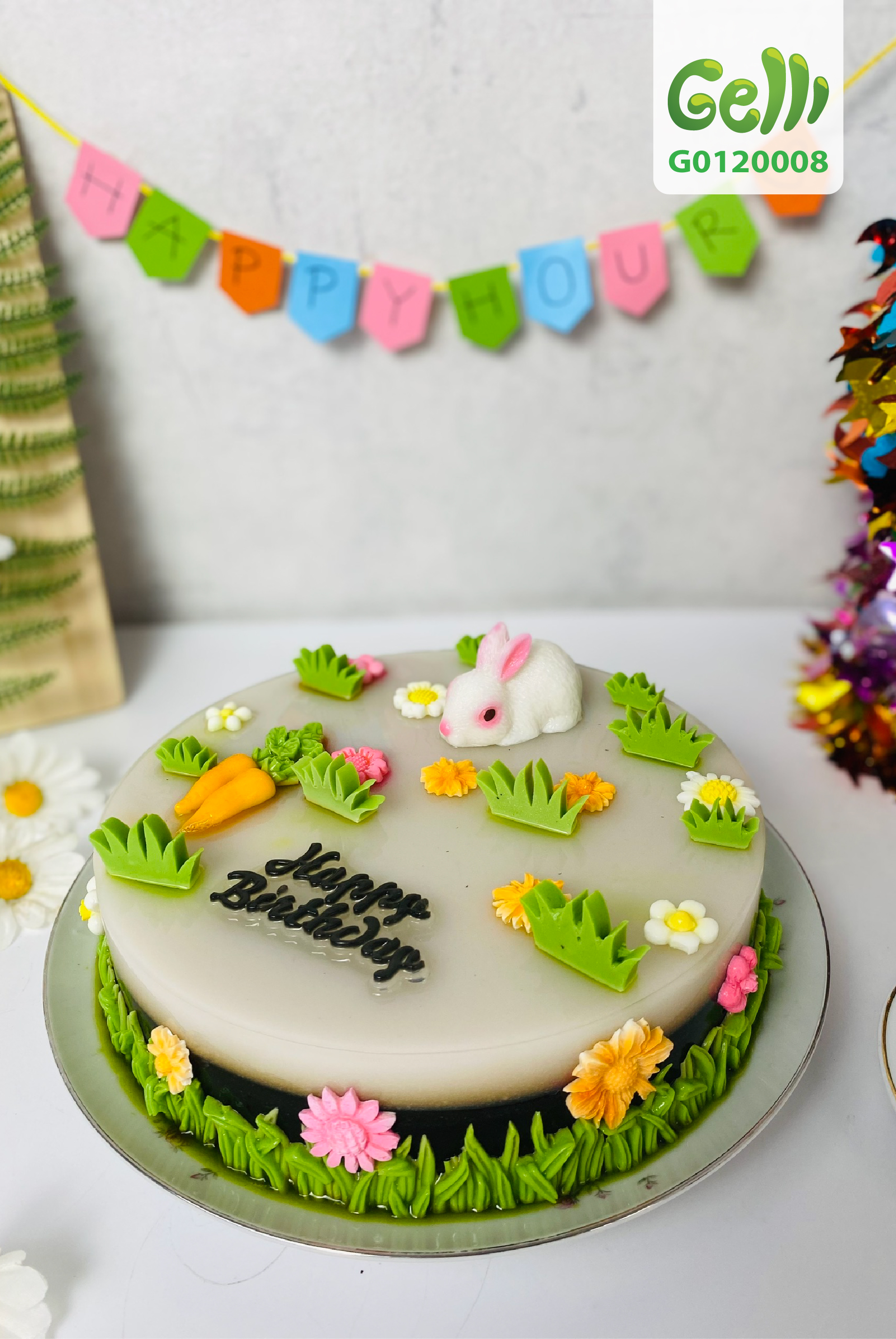 BÁNH SINH NHẬT RAU CÂU 4D CON THỎ VÀ VƯỜN CÀ RỐT CHO BÉ GÁI - GELLI – G0120008