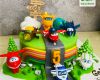 Đặc biệt, chiếc bánh với tone màu xanh lá với hình ảnh trái đất, cây cối, thiên nhiên xanh tươi. Trên mặt bánh trải dài một đường đua cùng đội máy bay gồm 6 chiếc máy bay nhiều màu sắc.