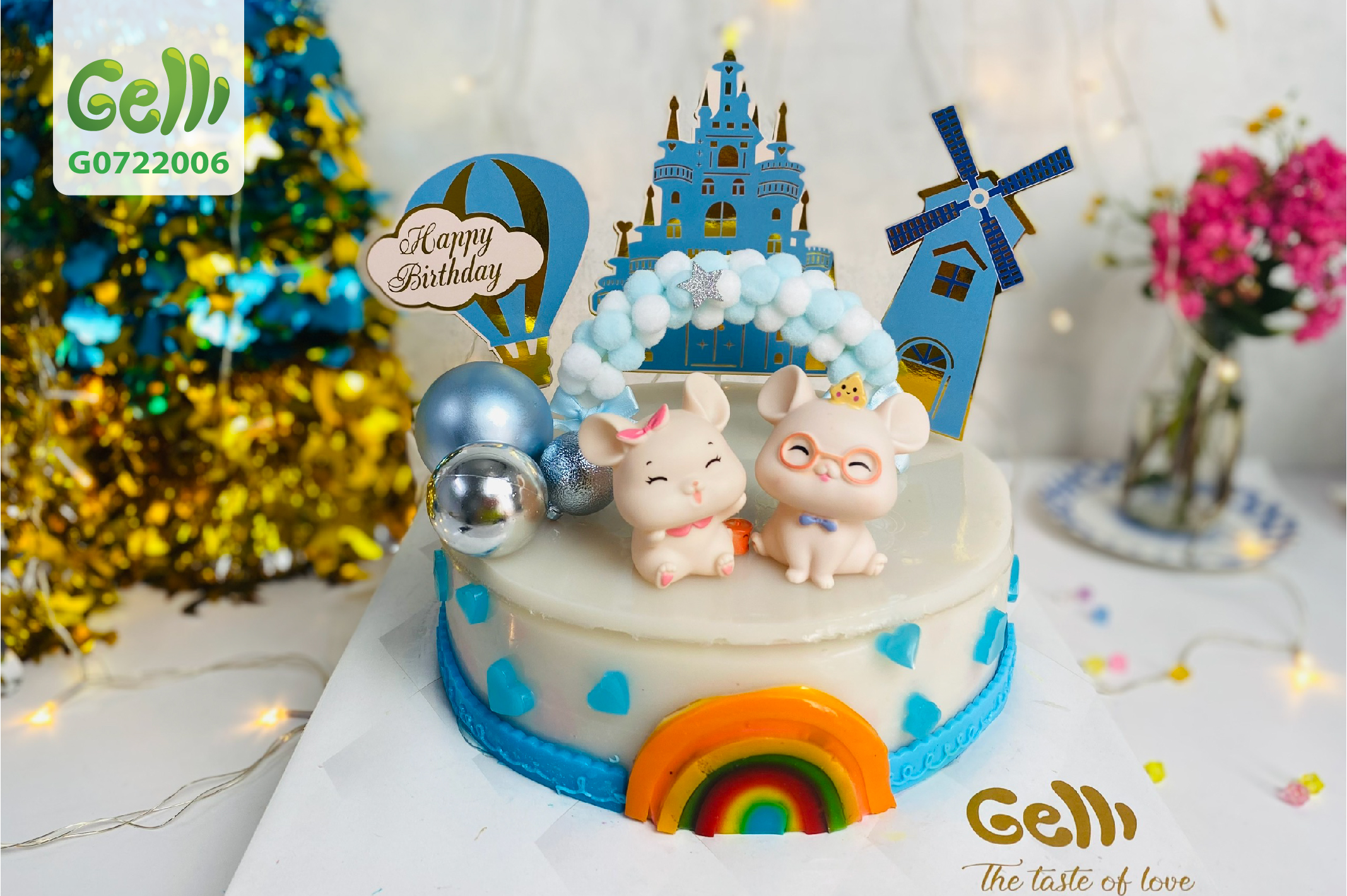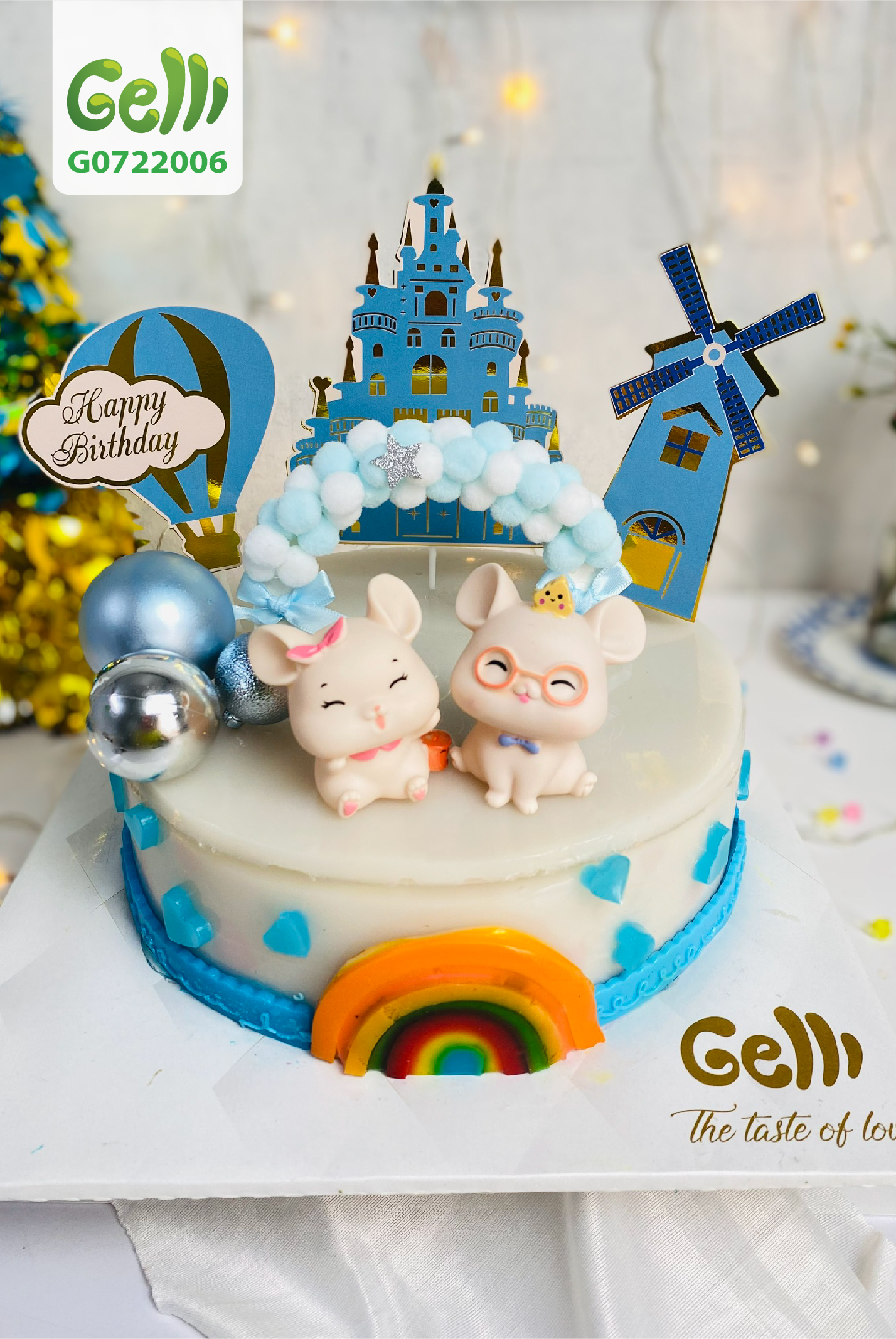 Bánh sinh nhật rau câu 4D hai bé chuột và lâu đài - Gelli - G0722006