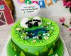 Bánh được trang trí hình bãi cỏ xanh mướt và một hồ cá nhỏ với vài chú cá đang bơi lượn, trên bờ có hai chú cừu trắng mập ú đang nằm chơi bên bờ hồ, vài bông hoa trắng vàng điểm tô cho chiếc bánh sinh nhật thêm sống động. Thêm nữa là viền bên dưới chân bánh có các viên chữ hình vuông xinh xắn làm thông điệp gửi đến chủ nhân chiếc bánh.