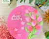 Bạn có thể tham khảo chiếc bánh sinh nhật rau câu hoa bay theo gió này làm món quà đặc biệt cho những người phụ nữ yêu hoa.
