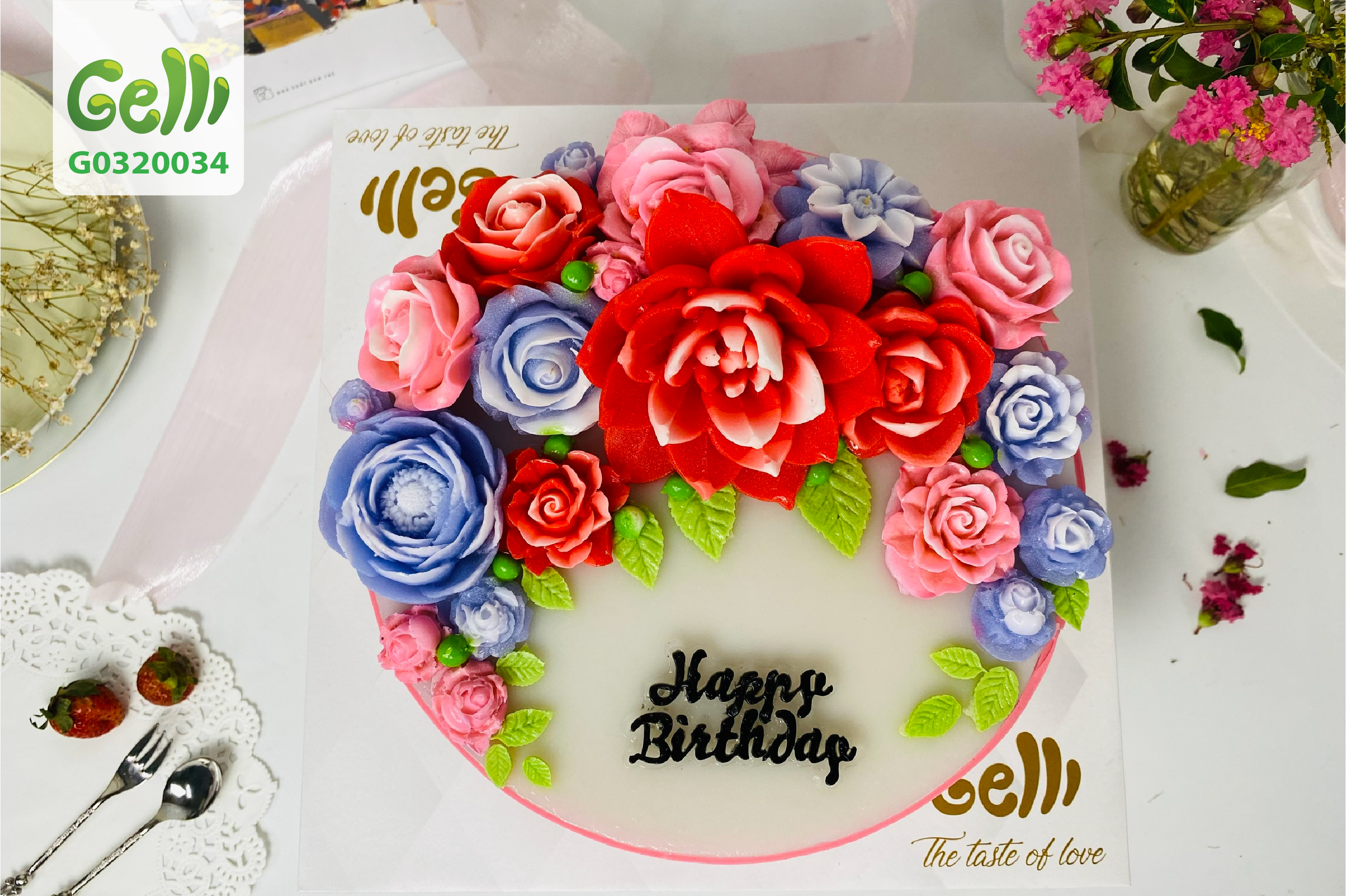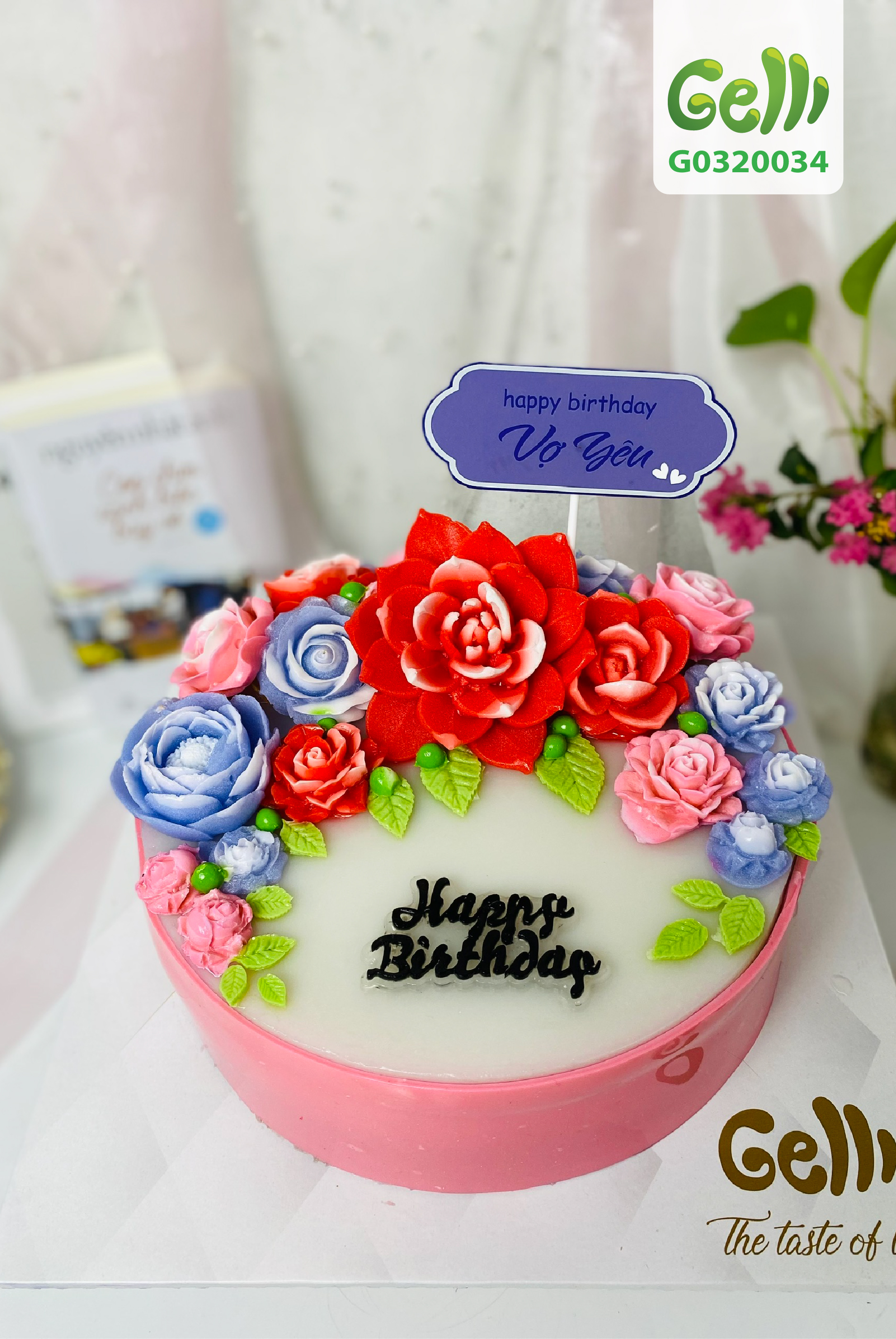 Bánh sinh nhật rau câu 4D hoa đa sắc - Gelli - G0320034