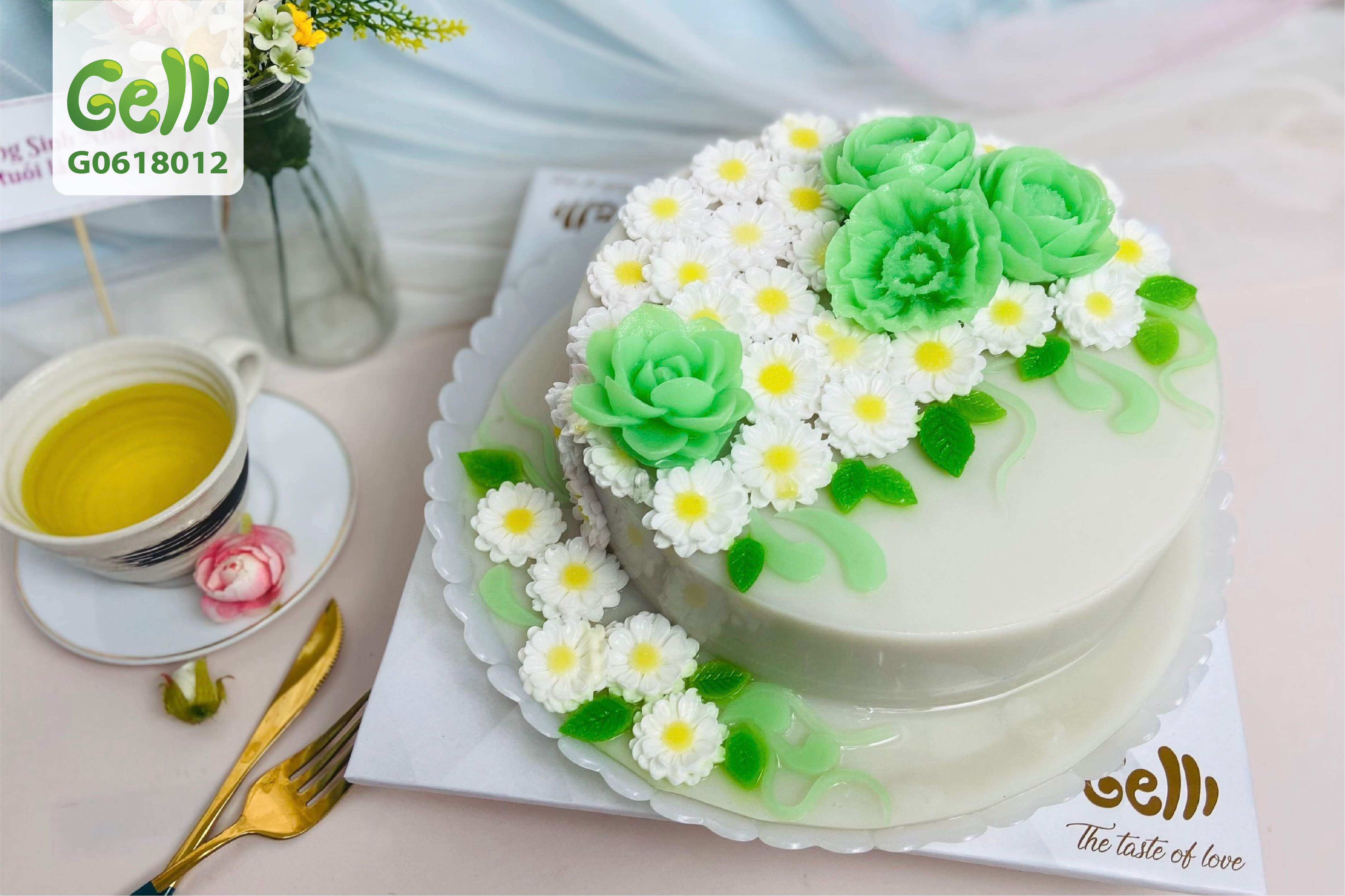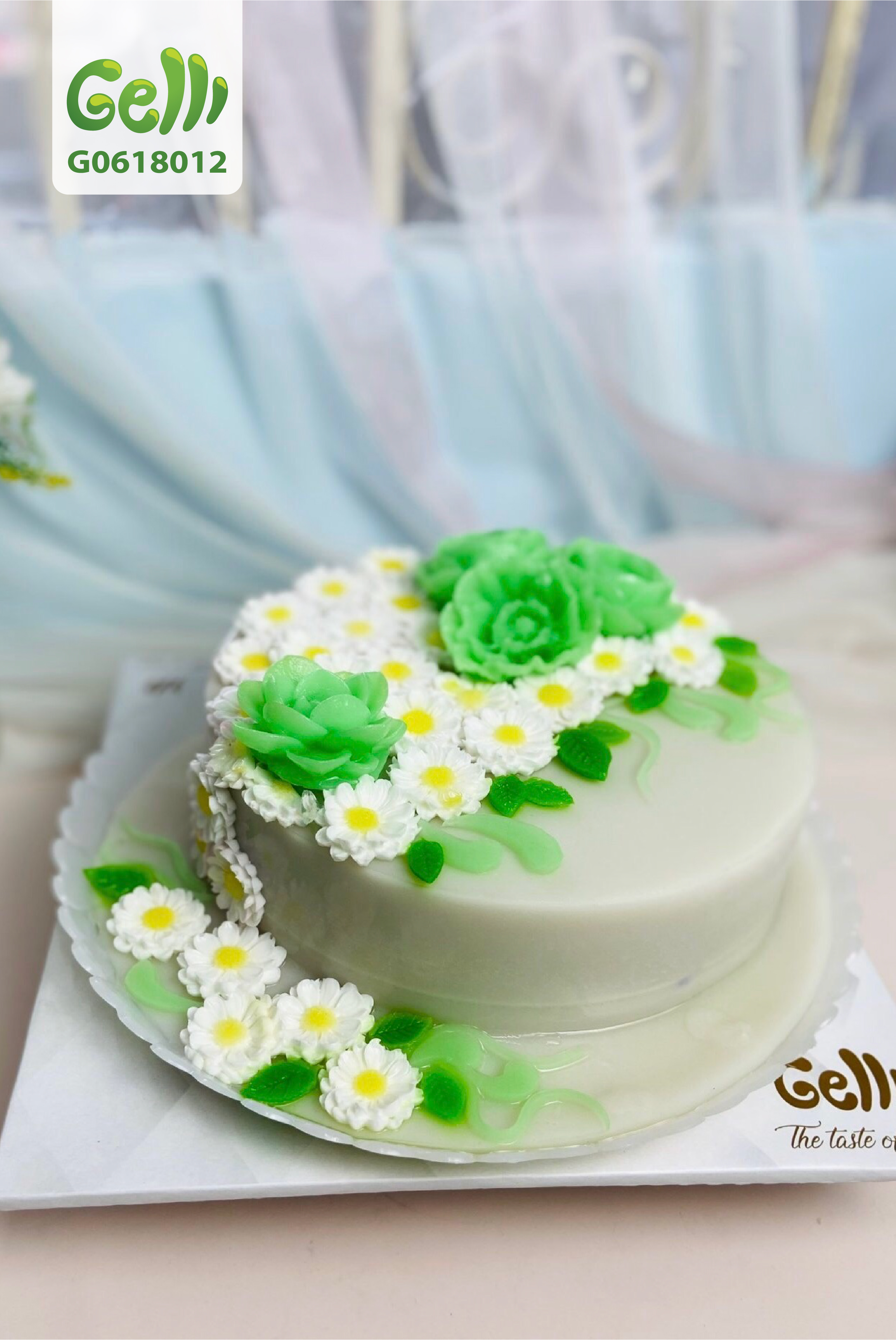 Bánh Sinh Nhật Rau Câu 4D Hoa trắng xanh - GELLI - G0618012