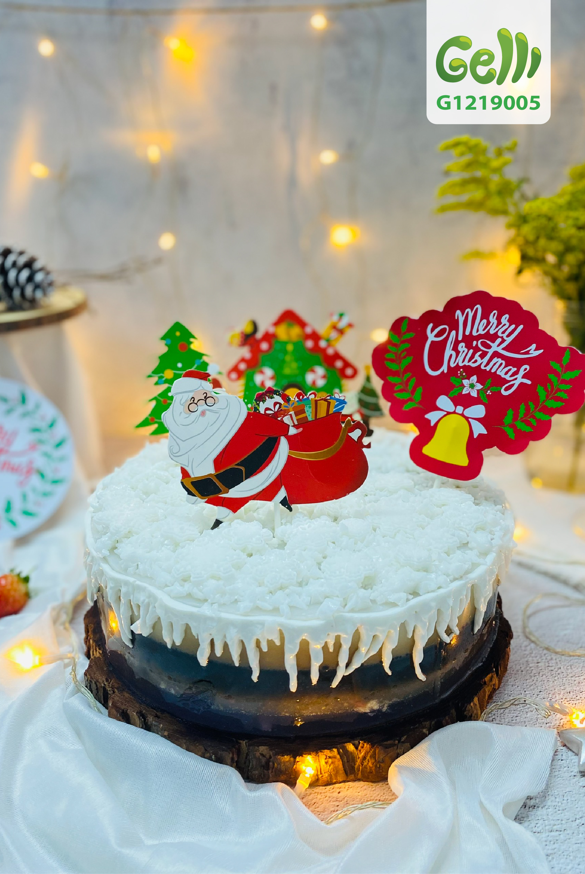 Bánh sinh nhật rau câu 4D Ông già Noel đi phát quà giáng sinh - Gelli - G1219005