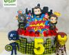 Bánh được trang trí hình các siêu anh hùng rất nổi bật, xung quanh viền bánh được ốp những tòa nhà cao tầng làm cho chiếc bánh trông sống động và hấp dẫn hơn rất nhiều.
