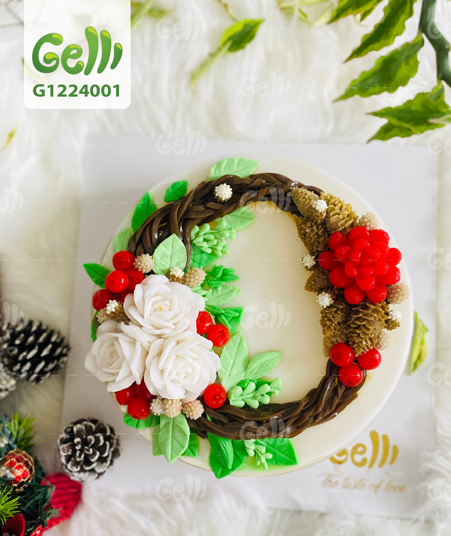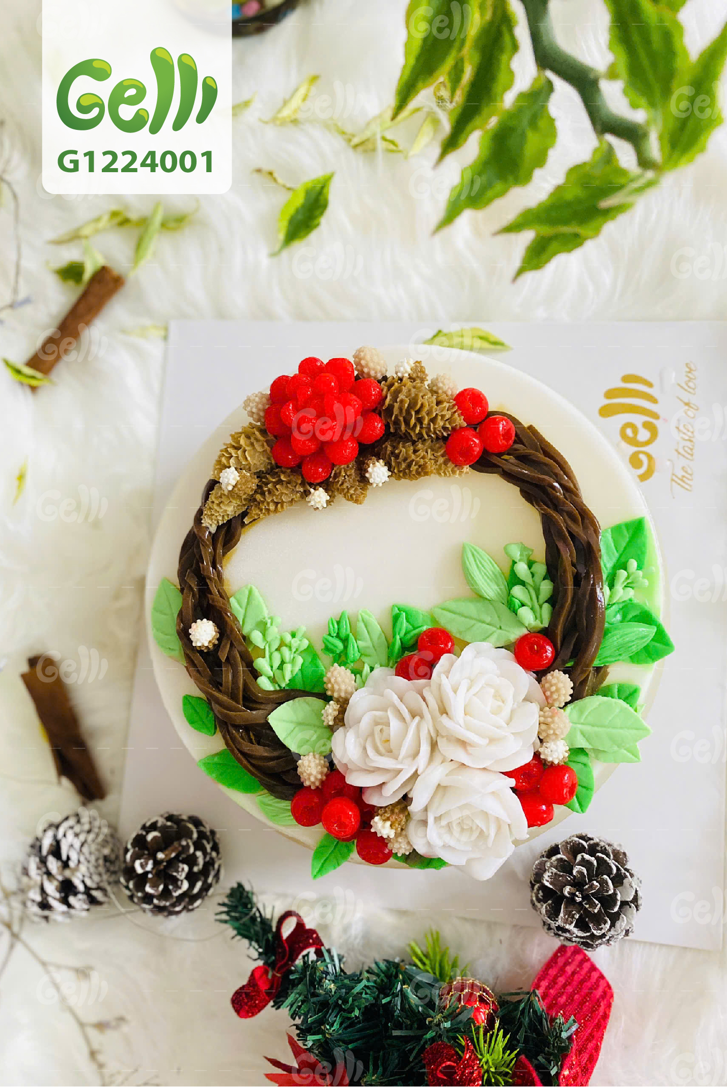 BÁNH SINH NHẬT RAU CÂU 4D VÒNG HOA GIÁNG SINH - GELLI – G1224001