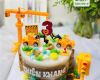 Bánh được trang trí với các mô hình xe công trình, cần cẩu, đèn giao thông và biển báo mini, tạo nên một không gian công trình thu nhỏ đầy thú vị. Các chi tiết được sắp xếp hài hòa, nổi bật chủ đề xây dựng, giúp chiếc bánh trở nên bắt mắt và thu hút ngay từ ánh nhìn đầu tiên.