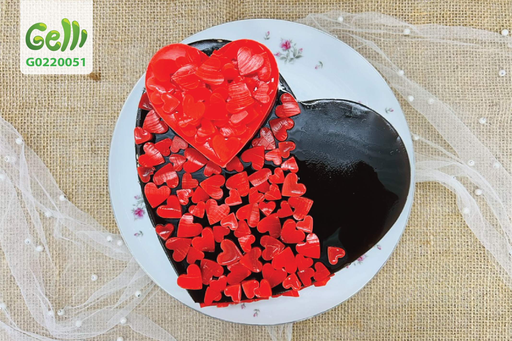 Bánh sinh nhật rau câu thả tim cho ngày valentine - Gelli - G0220051