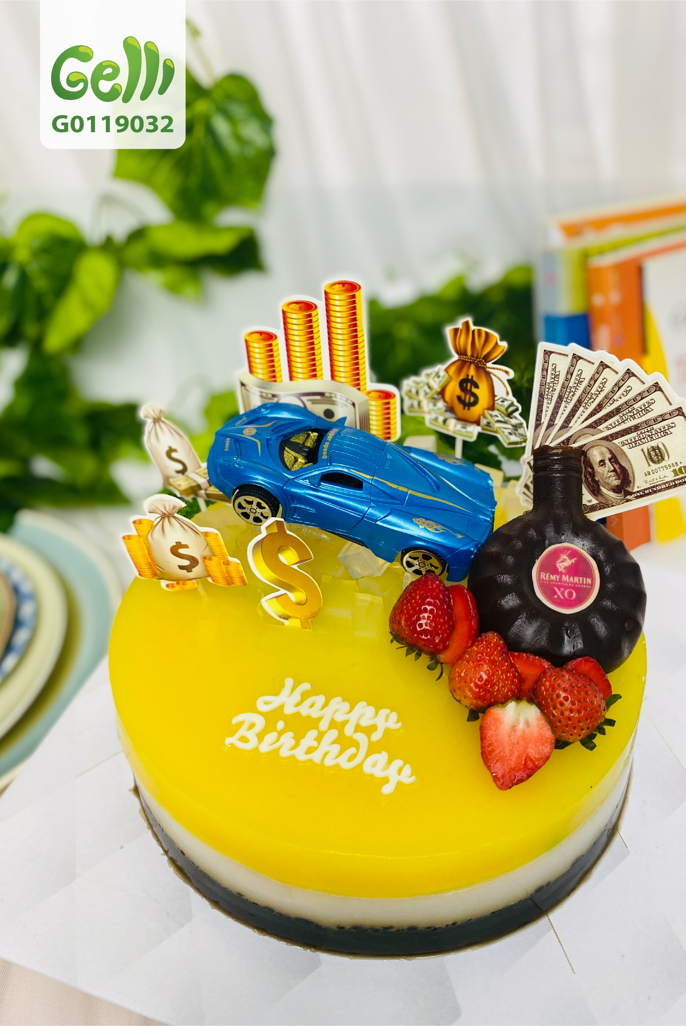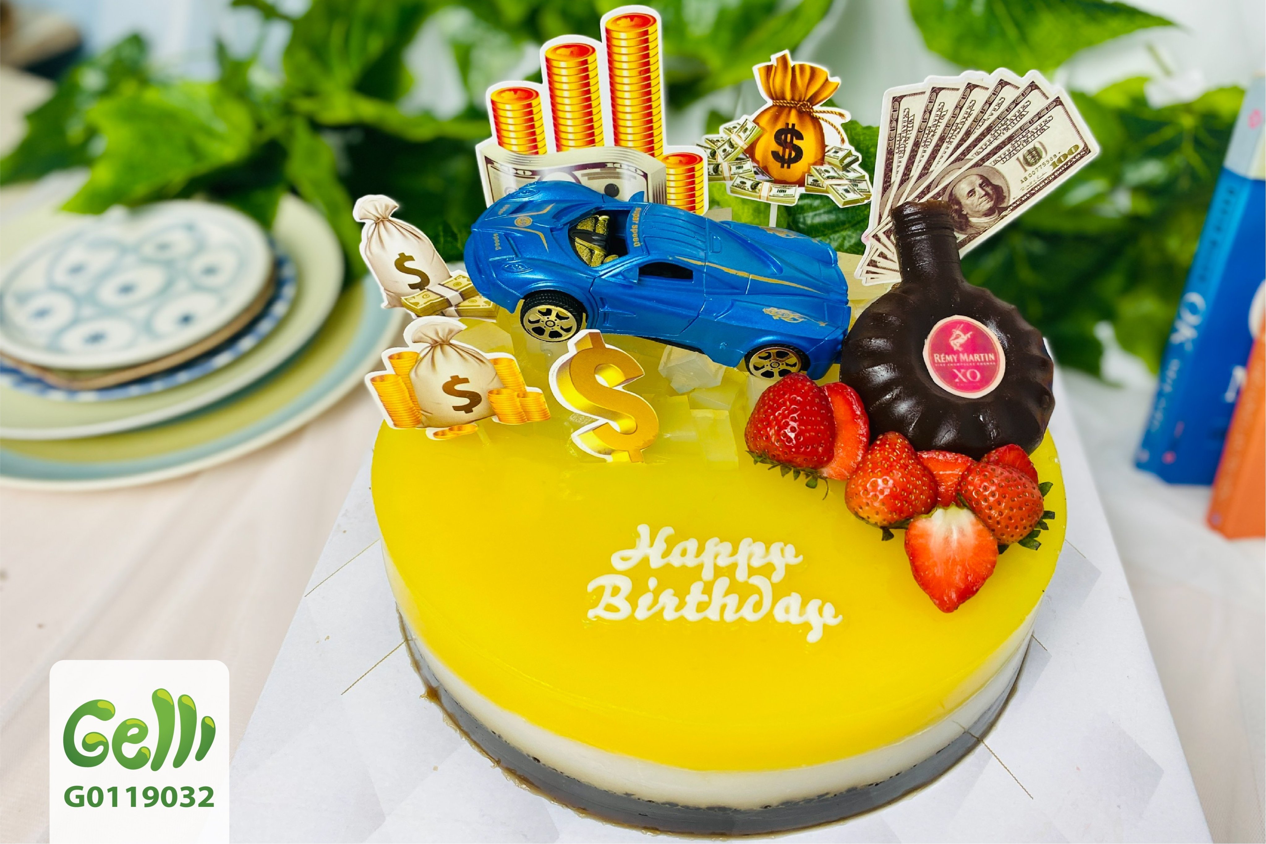 BÁNH SINH NHẬT RAU CÂU TRÁI CÂY 4D HOA VÀ RƯỢU XO - GELLI - G0119032