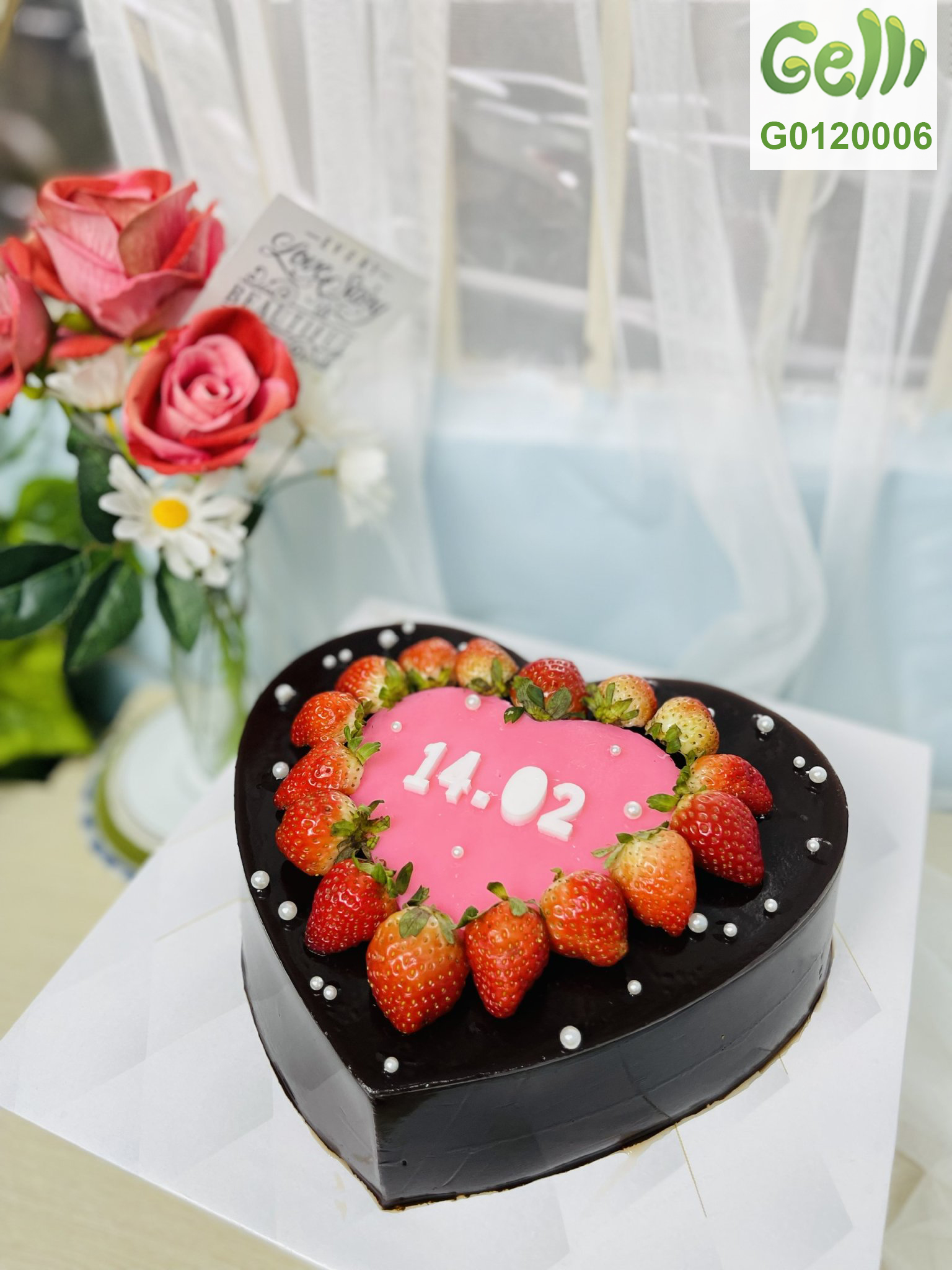 Bánh sinh nhật rau câu trái cây trái tim ngày valentine - Gelli - G0120006