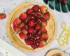 Bánh được trang trí bằng những trái dâu tươi đỏ mọng nước, và những trái nho ngọt lịm xếp thành hình trái tim, cùng điểm nhấn là chữ Love được cắm lên bánh nổi bật ý nghĩa đặc biệt của ngày lễ tình nhân.