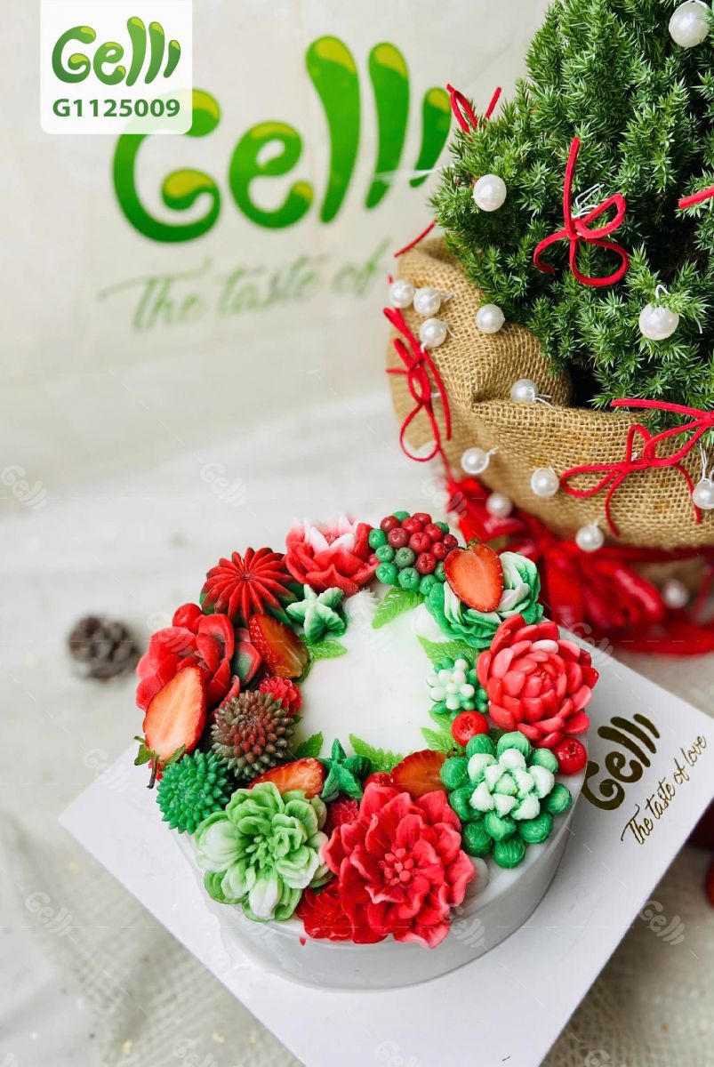 Mỗi mùa Noel đến, Gelli lại giới thiệu những thiết kế độc đáo mang đậm dấu ấn lễ hội. Và năm nay, Bánh sinh nhật rau câu vòng hoa Noel – Gelli – G1125009 chính là một trong những mẫu được yêu thích nhất bởi vẻ đẹp tinh tế và đầy sắc màu.