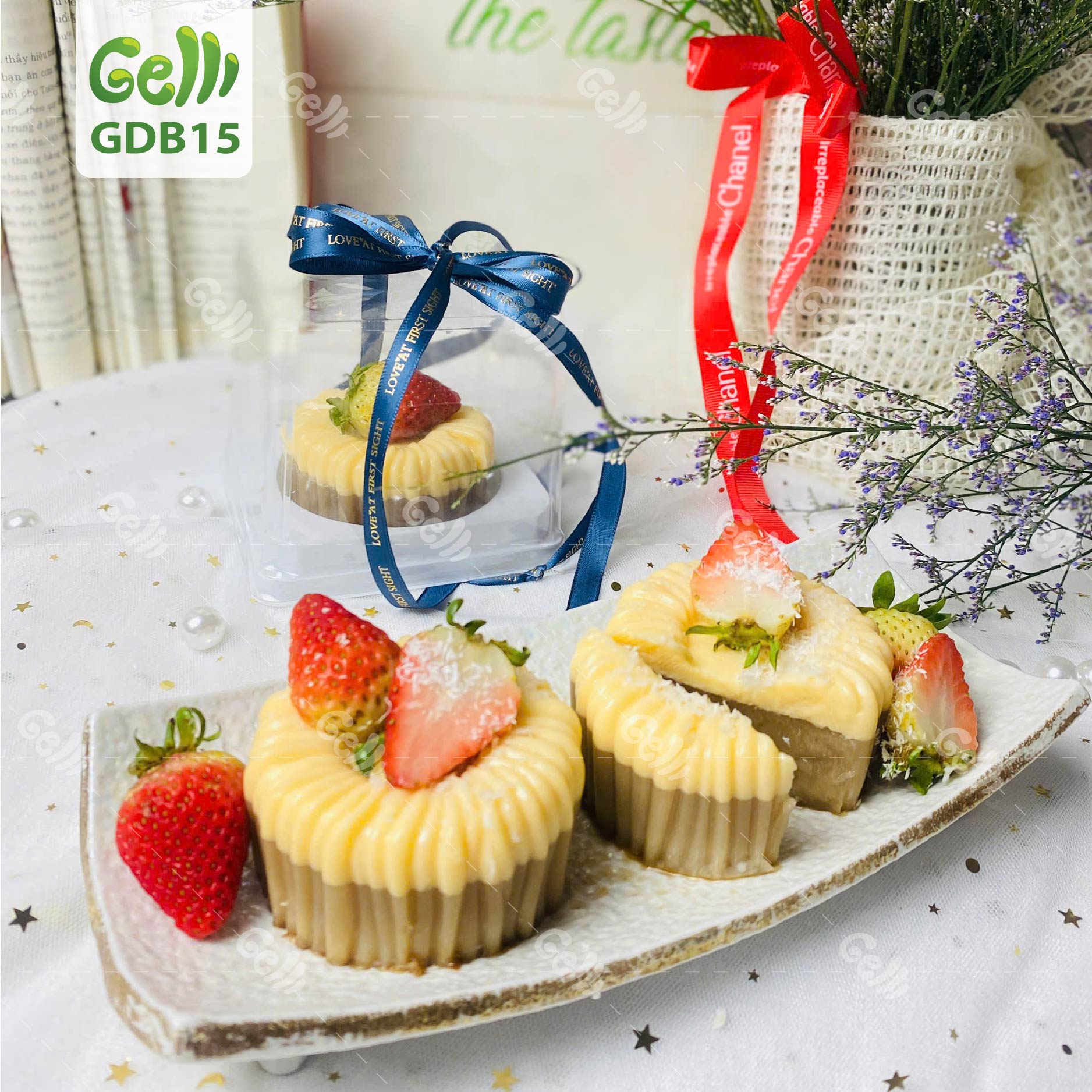 Khám phá set bánh rau câu Flancheese & cốt dừa cà phê Gelli GDB15 với hương vị béo nhẹ, thơm dịu và topping dâu tây tươi. Mini xinh xắn, đóng hộp sang, hợp để tặng hoặc thưởng thức.