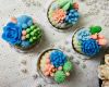 Mỗi chiếc bánh được tạo hình như một chậu sen đá và xương rồng mini, với màu sắc tươi sáng: xanh dương, xanh lá, hồng pastel… tạo nên tổng thể sống động, sang trọng và vô cùng bắt mắt. Không chỉ đẹp mắt, bánh còn mang ý nghĩa về sự bền vững, sức sống mãnh liệt – như lời chúc tốt lành gửi đến người nhận.