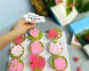 Bánh trang trí hình hoa các loại khác nhau với đủ các sắc màu rực rỡ, mang lại không khí sôi nổi, vui tươi cho bữa tiệc.
