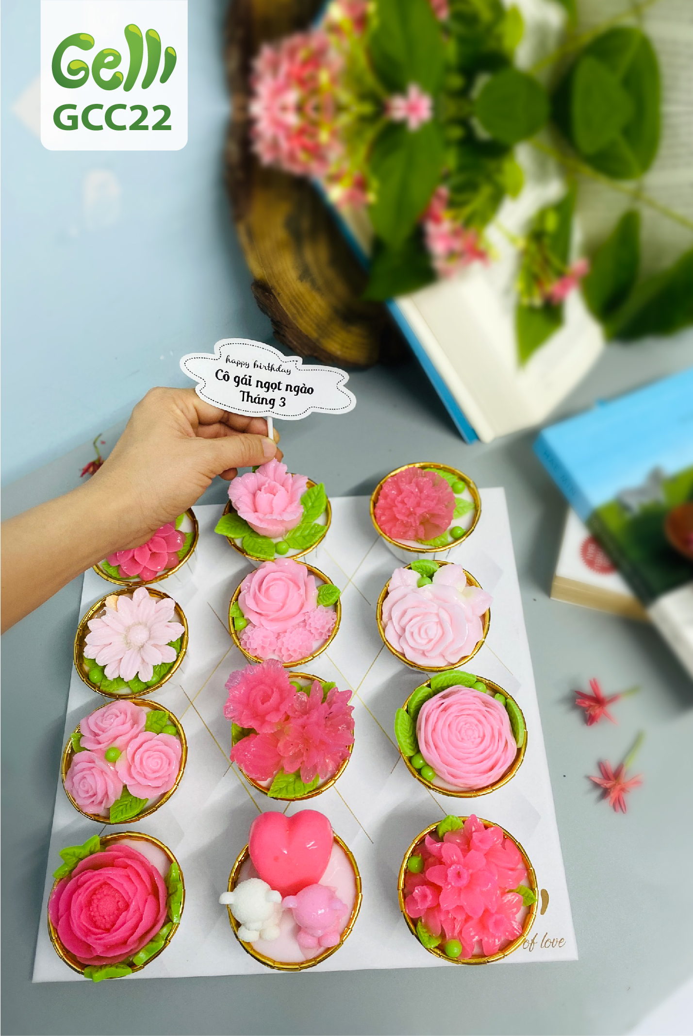 SET RAU CÂU CUPCAKE HOA HỒNG - GELLI - GCC22
